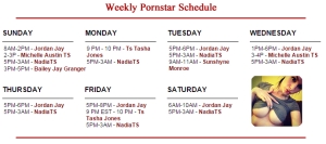 This is the schedule to the shemale porn stars that you want to watch live on webcam.